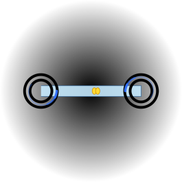 דמיינו שני קוורקים הנמשכים זה מזה ומקושרים במסילה אחת במתח גבוה.