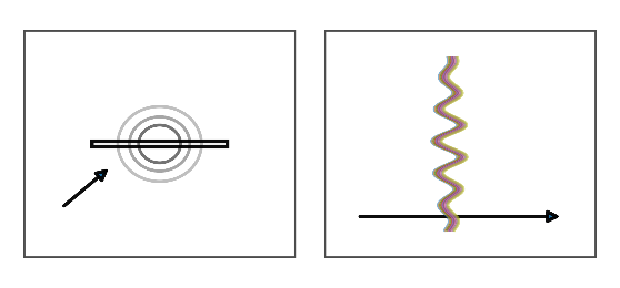 - שתי הרצועות מצויות במישור מאונך אל « k »; בשדה רחוק מתקיים « E ⟂ B ⟂ k », ללא רכיב לאורך « k ».
